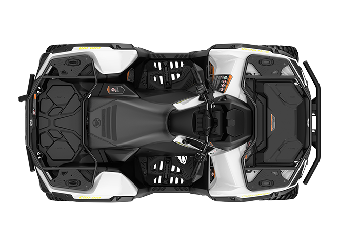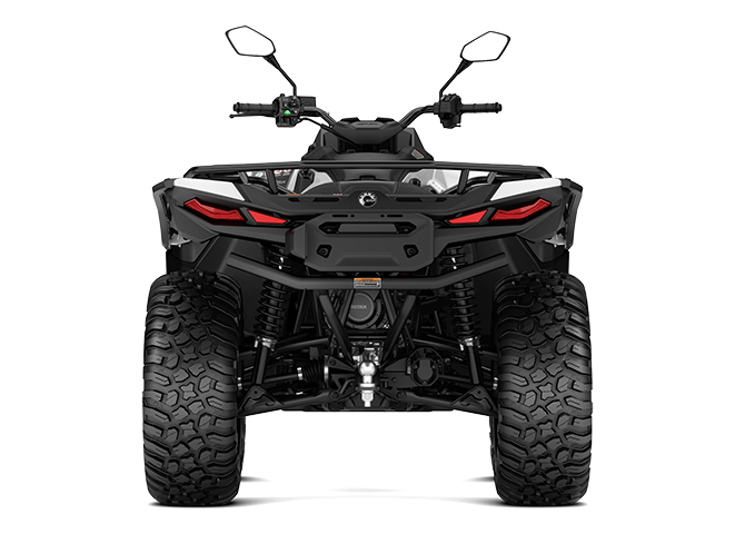 Le premier quad 100% électrique de Can-Am. Moteur Rotax E-POWER 47 cv refroidi par liquide avec batterie lithium-ion 8,9 kWh intégrée. Autonomie jusqu'à 80 km (WMTC) avec charge rapide 20-80% en 50 minutes. Transmission L/N/H/P avec 2RM/4RM Visco-Lok QE, direction assistée dynamique triple mode (DPS), 3 modes de conduite (Travaux/Standard/Sport), freinage à régénération 3 niveaux, suspensions double bras triangulaire 24,8 cm avant / 26 cm arrière, écran couleur 5", phares LED, capacité remorquage 830 kg, garantie batterie 5 ans.