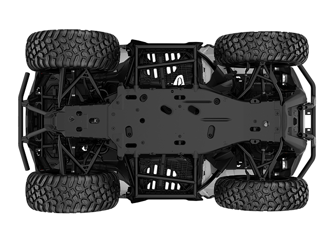 Le quad utilitaire 6 roues avec moteur Rotax ACE 650 cm³ développant 50 cv. Doté de la transmission 4RM/6RM sélectionnable, de la direction assistée dynamique et d'une capacité de chargement exceptionnelle de 454 kg pour les travaux les plus exigeants !